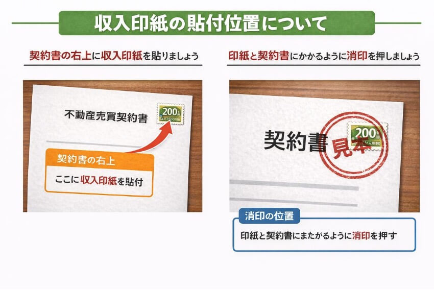 実際に印紙を貼り付ける位置などについて解説します。